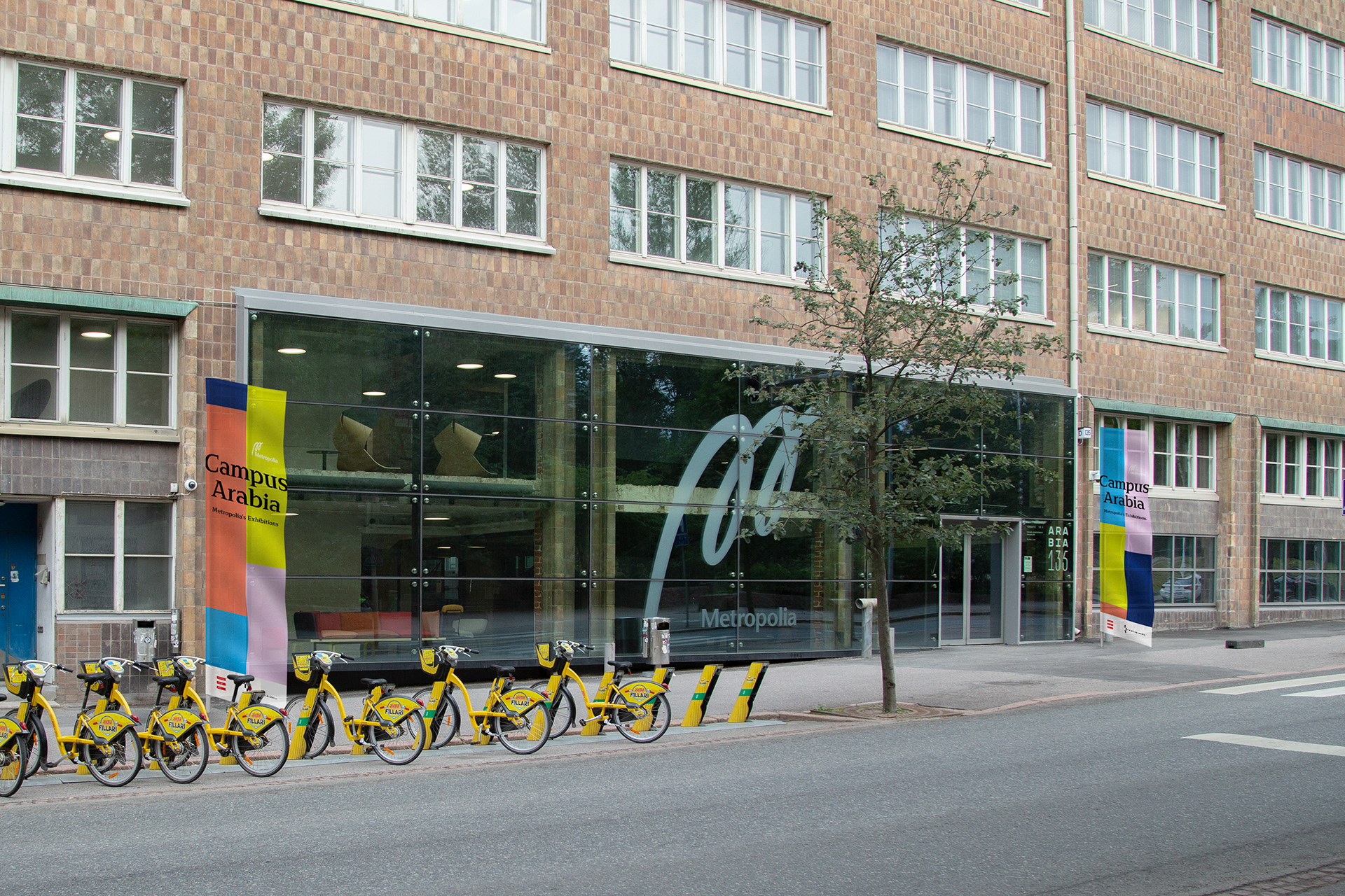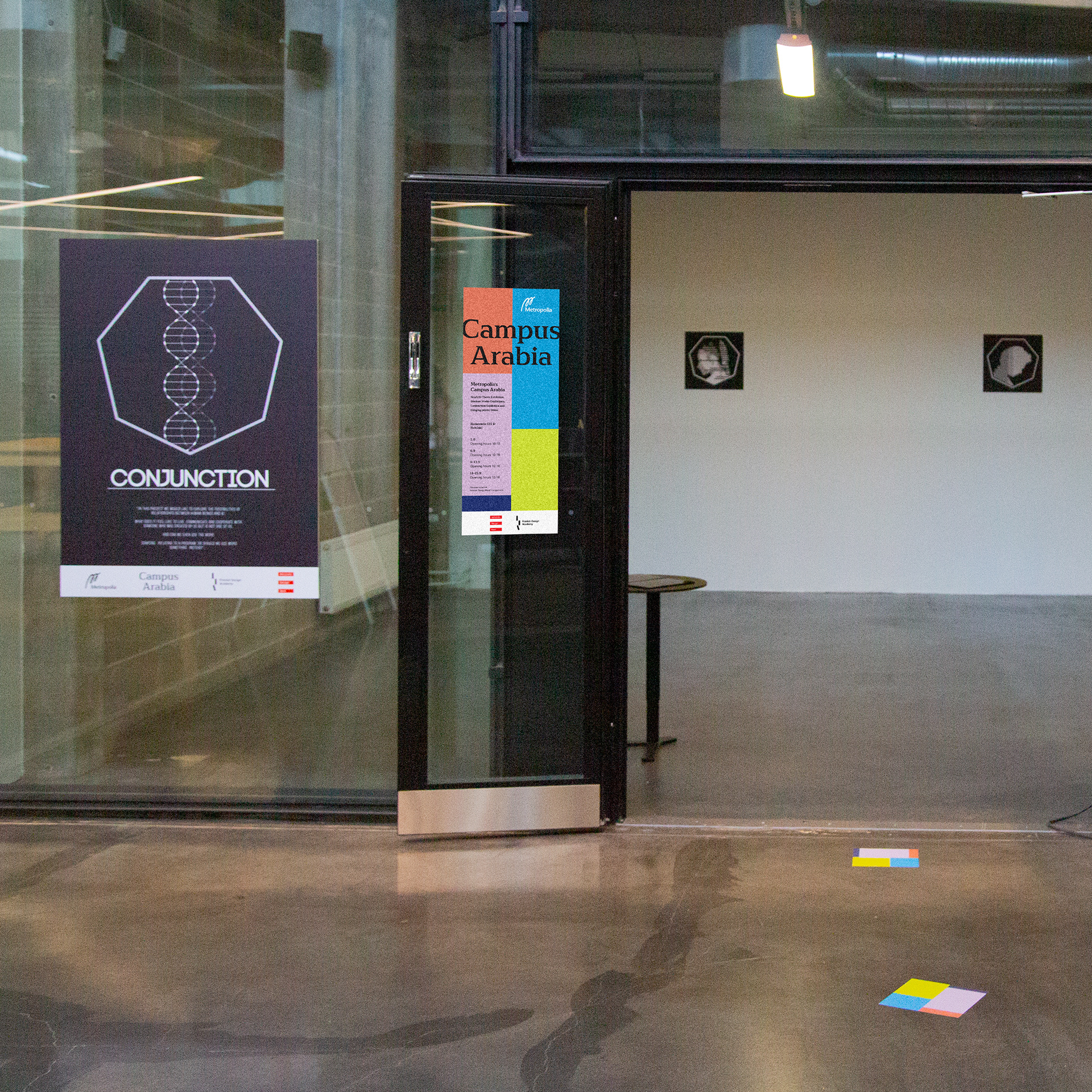Visual identity, posters, flags, floor stickers and an animation concept for the Campus Arabia 2019 exhibition. The event is part of Helsinki Design Week's programme.